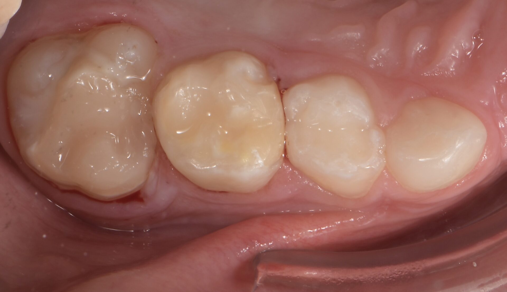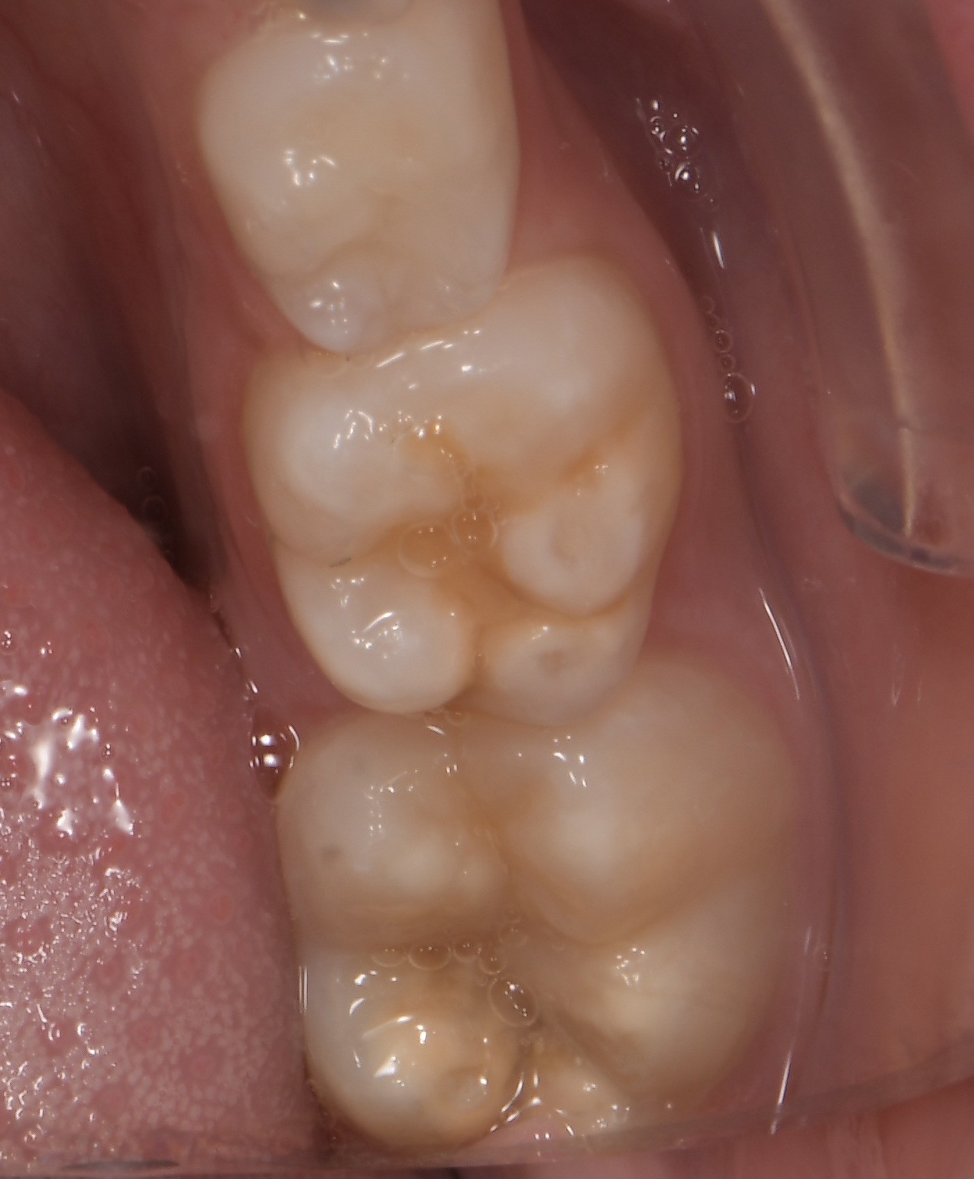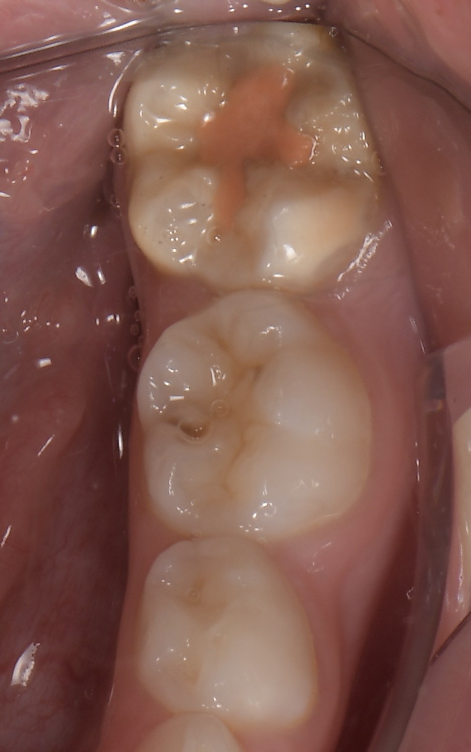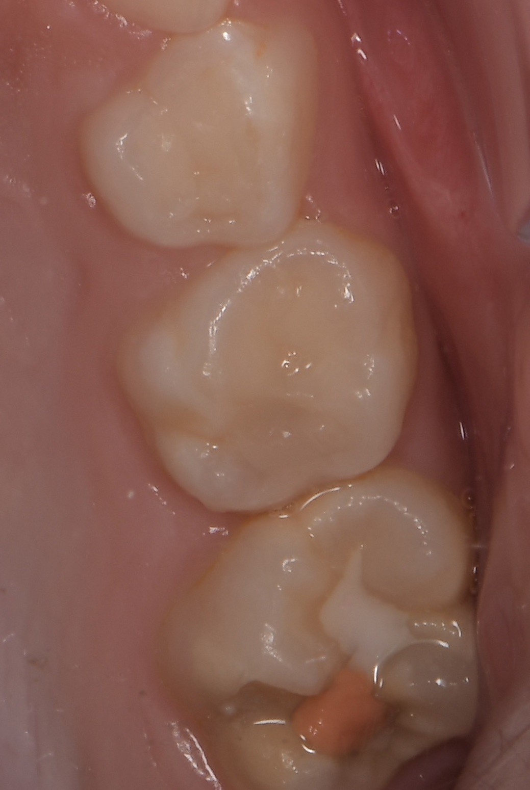 (sans atteinte carieuse, contrairement à 4 présentant une atteinte occlusale)