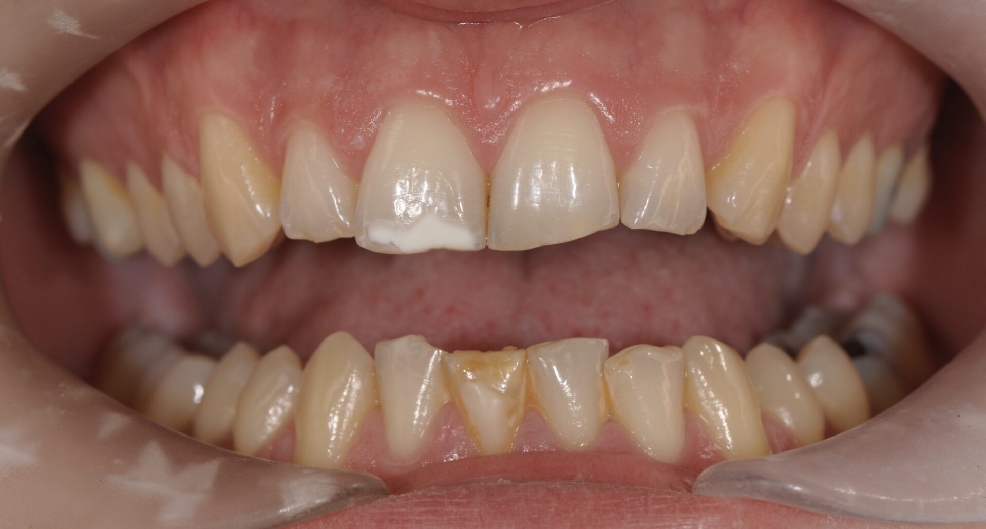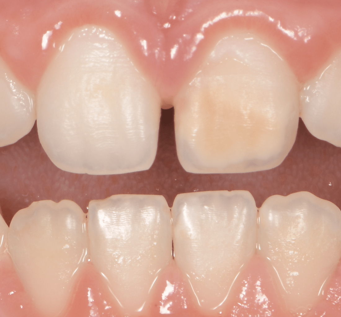 Si en antérieur, le préjudice esthétique n’est pas trop important et qu’il n’y a pas de perte de substance, il est conseillé d’attendre la majorité afin de réaliser un éclaircissement suivi de la technique d’érosion infiltration (ICON), plus ou moins une stratification de composite esthétique (Figures 8-9-10).
