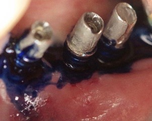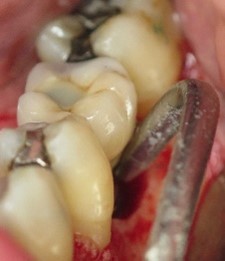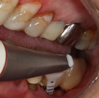 Figure 1: suppuration au sondage d’une molaire atteinte de péri-implantite
