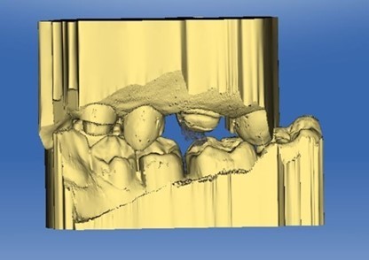 Il est procédé à une analyse occlusale plus fine (système K7 myotronic) à l’issue de laquelle une relation inter arcade thérapeutique est obtenue. La DVO est augmentée avec une position plus antérieure et plus à droite qu’en PIM.