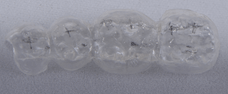 Les orthèses permettent de tester et valider la position. Après 2 mois de port les symptômes ont disparu et la patiente se sent bien. Dès que la patiente enlève les orthèses (pour les repas notamment) les craquements reviennent.