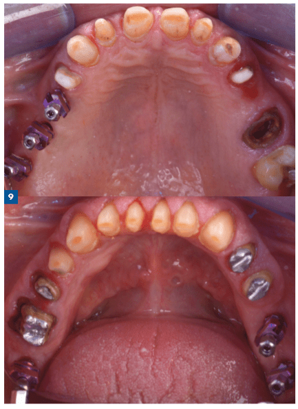 Fig. 9 : 6 mois après, la greffe sinusienne est cicatrisée, les implants sont ostéo intégrés, les empreintes définitives sont alors prises.