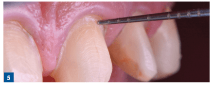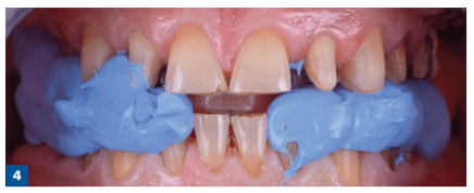 Fig. 5 : par secteur, nous enregistrons l’occlusion avec la plaque de Koïs et du silicone d’occlusion. Les empreintes en silicone double mélange sont prises et nous demandons au laboratoire de prothèse les couronnes et facettes provisoires.