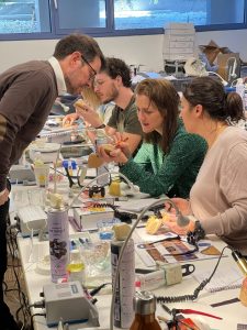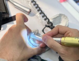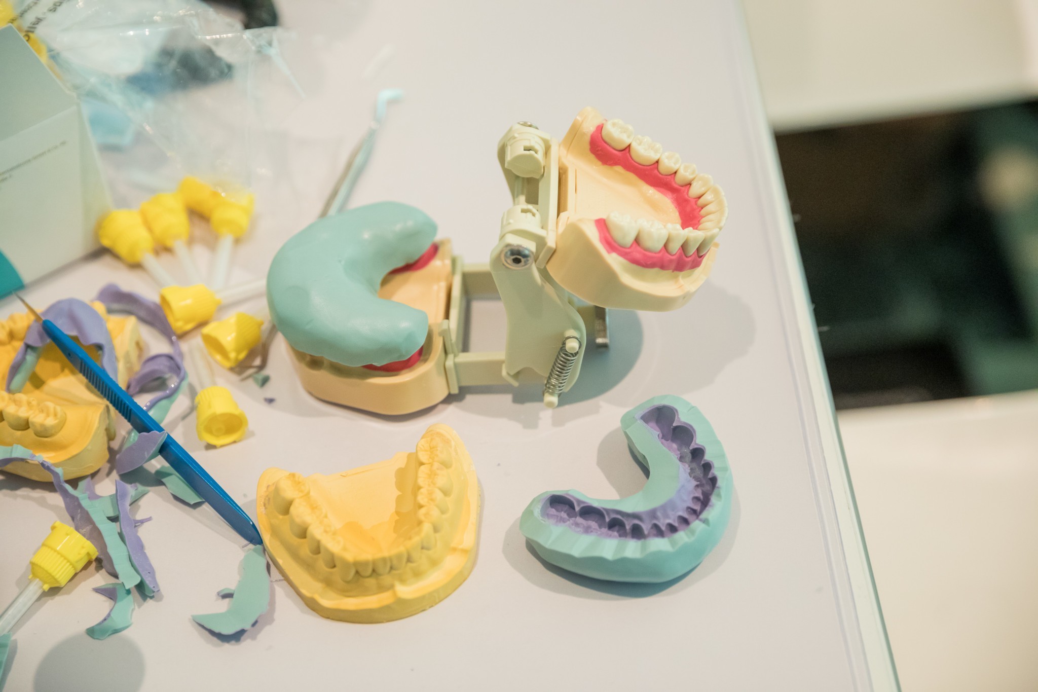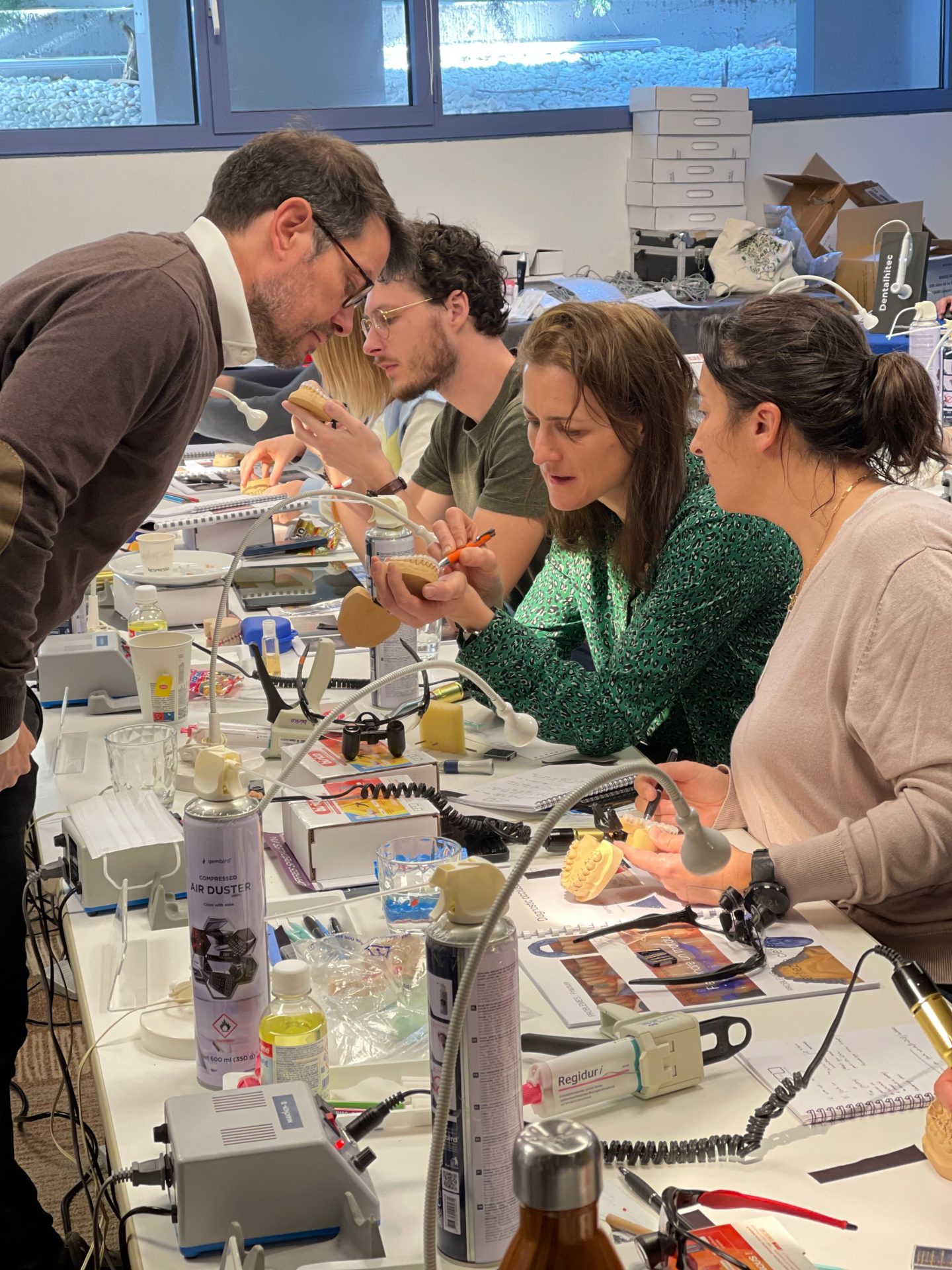 matériel obligatoire : blouse, aide optique ou lunette de protection, des modèles (haut et bas) de votre bouche résine ou plâtre, un kois déprogrammé de votre modèle maxillaire, pièce à main + fraise à résine, vos empreintes 3D sur clé USB, contre angle bague rouge