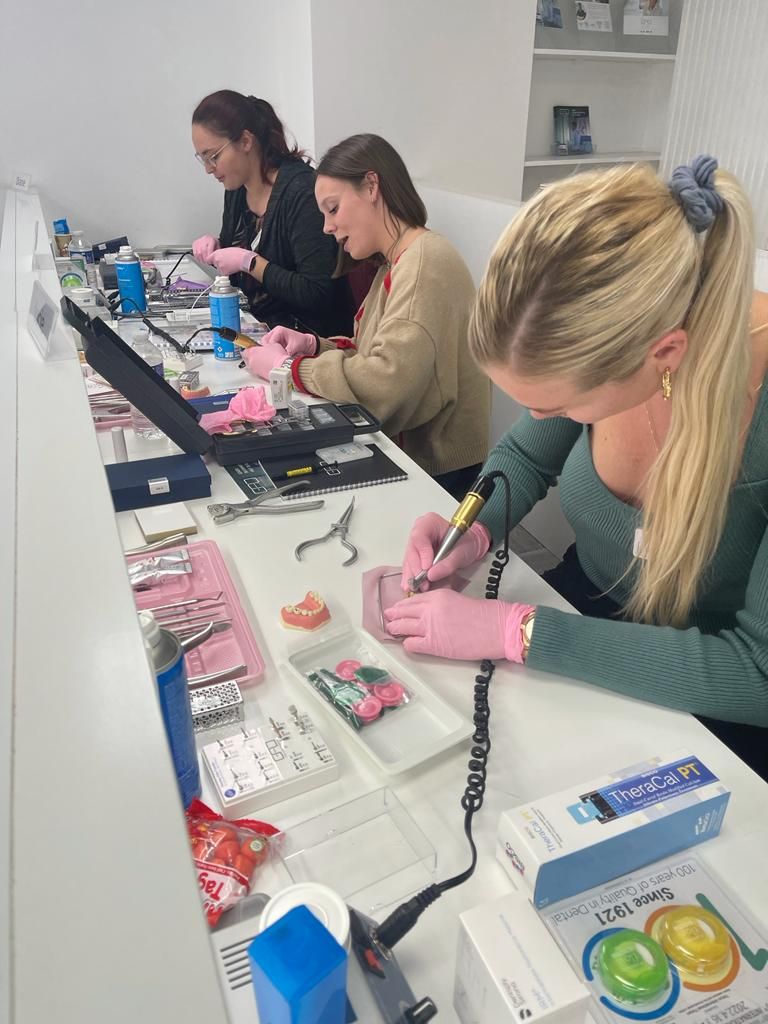 TP pose de digue fendue, sealant, pulpotomie, reconstitution par secteur avec différentes techniques de matriçage. formation pédodontie