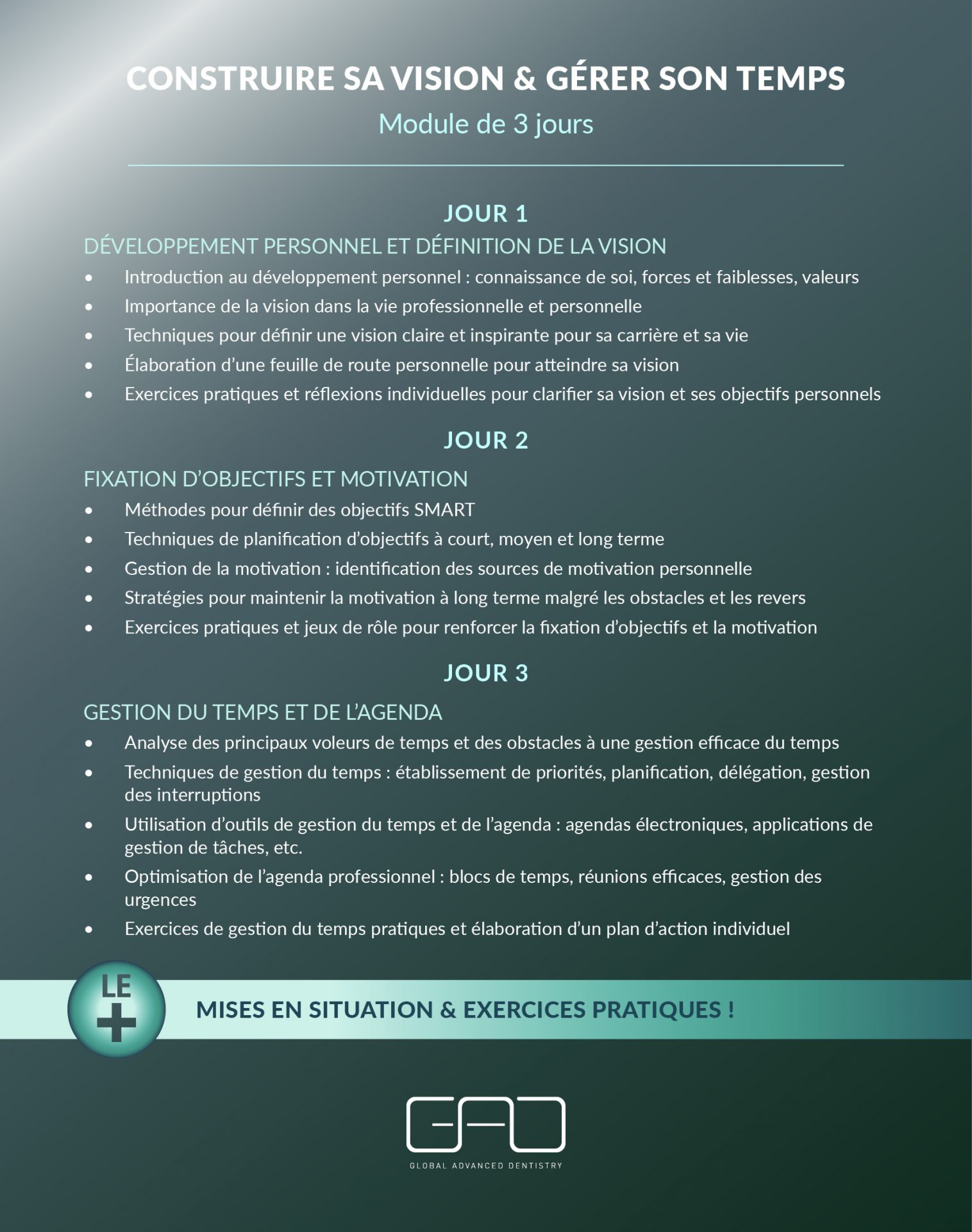 Formateurs : Dr Cyril Gaillard – Chirurgien dentiste, fondateur GAD Cabinet & GAD Center & Benoît Bassoli – Coach en développement personnel